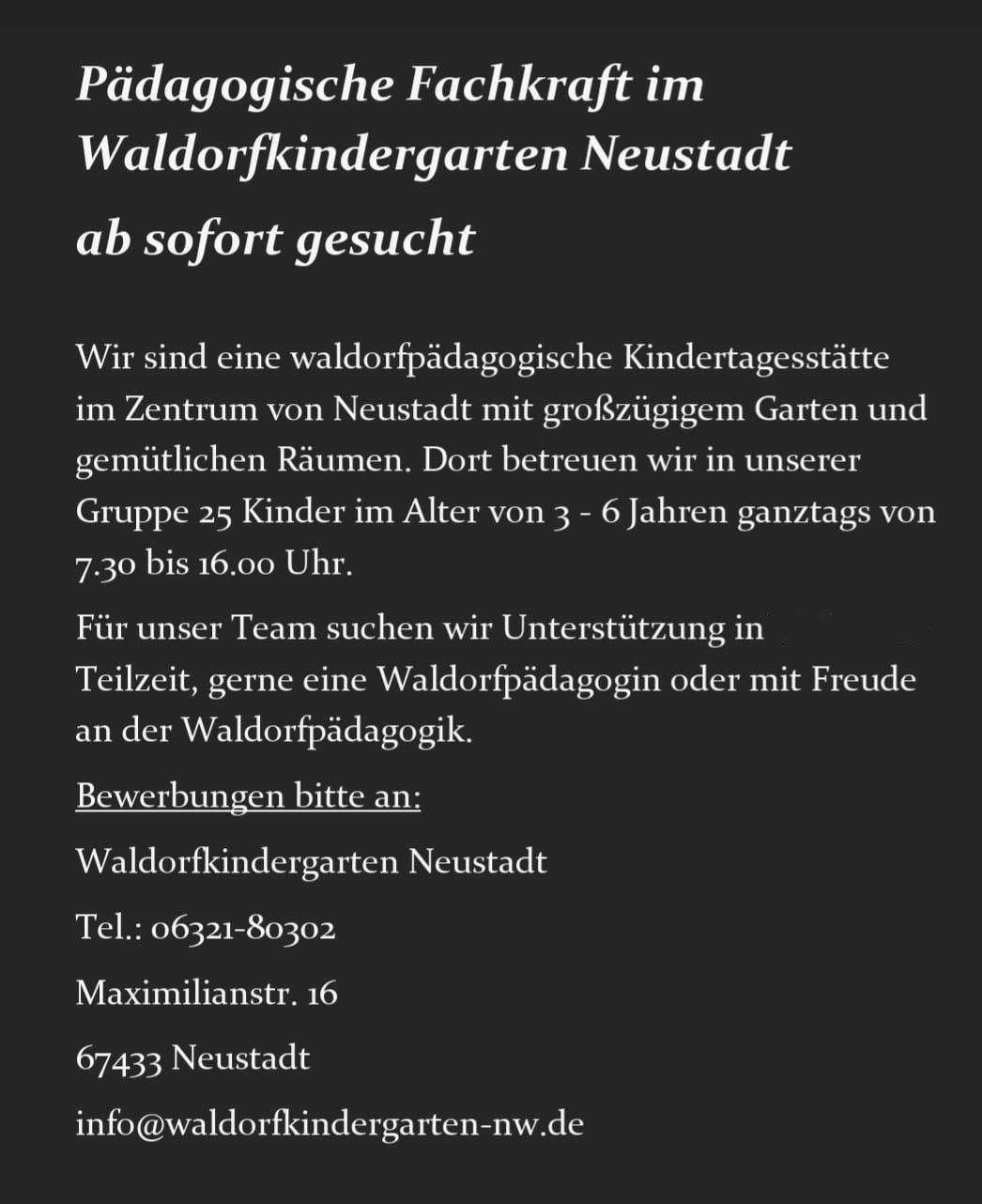 Pädagogische Fachkraft in Teilzeit ab sofort gesucht